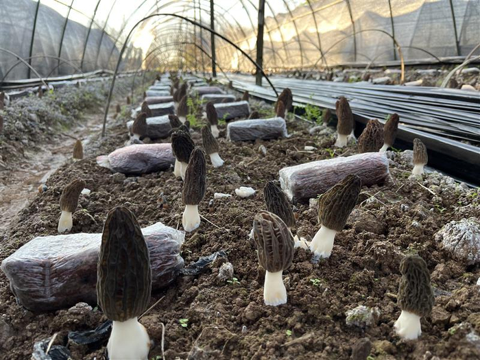 李晓春家羊肚菌第一次采收。