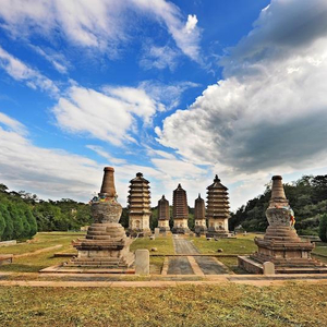五座密檐式砖结构墓塔,有三座是十三层檐,两座是七层檐,平面为正八边形,由砖雕莲花须弥座的塔基、雕饰精美的塔身以及层层密檐和塔刹等组成。其中,造型最为精美、保存最为完整的是懿行大师塔,俊秀挺拔,体现了我国古代佛教建筑艺术的高超水平。