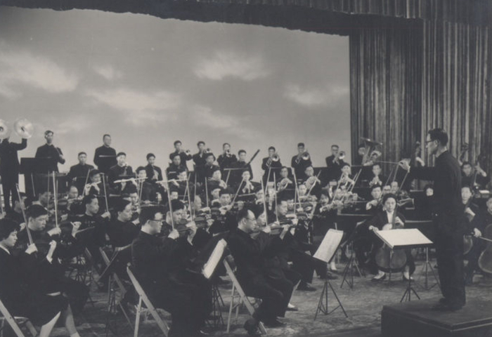 1965年第6届“上海之春”音乐会上,管弦乐序曲《红旗颂》演出现场