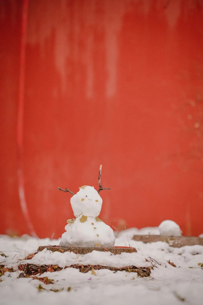 南京明孝陵红墙下的小雪人