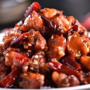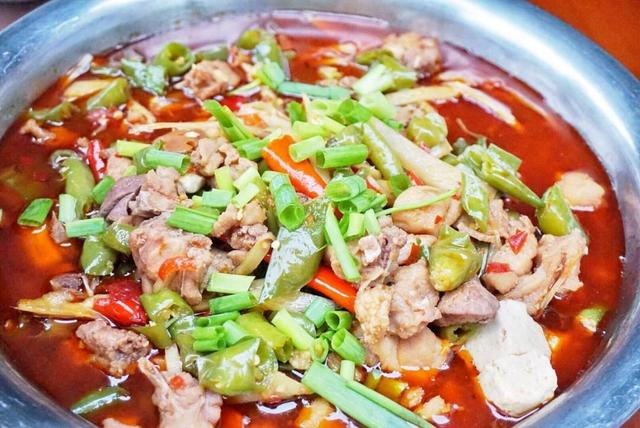 哑巴兔看上去绿绿的,不像其他川菜那么红亮,但实际上它的辣度可是丝毫不差,它用到了小米辣、泡山椒、尖椒、海椒、花椒等,甚至有“十斤鲜辣椒,做一锅哑巴兔”的诨名,所有的辣味,麻味都渗透在兔肉里面,吃完后会让人辣的说不出话来,因此得名“哑巴兔”,酷爱吃辣、无辣不欢的朋友一定要试试。