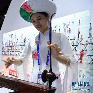 在广西南宁举行的第18届中国-东盟博览会上,演员在展览现场表演京族独弦琴(2021年9月11日摄)。 新华社记者 陆波岸 摄