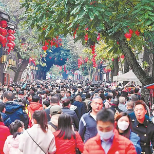 大年初二,福州三坊七巷景区人气旺旺,处处洋溢着喜庆祥和的过年气氛。福建日报记者 游庆辉 摄