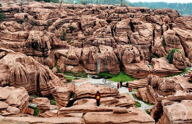 酉阳红石林以岩溶地貌、峡谷地貌、地层剖面为主,色泽殷红暗紫,景观千姿百态。