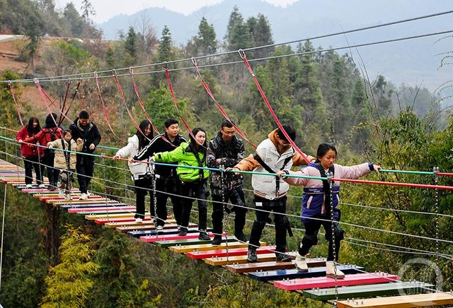 游客在景区体验高空项目。