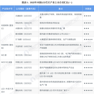LED芯片是一个半导体的晶片,晶片的一端附在一个支架上,一端是负极,另一端连接电源的正极,使整个晶片被环氧树脂封装起来。目前,我国LED芯片产业各环节的上市公司数量较少。具体包括: