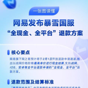 支持全现金、全平台、最高单价退款申请通常而言,国服代理游戏终止运营服务,普遍会通过“补偿礼包”“补偿活动”等方式,将玩家账号内未消耗的虚拟货币、未失效的游戏服务,替换为旗下其他游戏的虚拟货币或游戏服务。网之易针对暴雪游戏产品推出了以现金形式兑付、支持全平台退款申请的方案,退款力度远超行业常规。网之易退款说明显示,计划针对玩家在游戏内已充值但未消耗的虚拟货币或未失效的游戏服务,开放退款申请;并公布了包括战网点数,及《魔兽世界》《炉石传说》《守望先锋》《暗黑破坏神III》《风暴英雄》等可退款商品的现金结算标准。值得关注的是,所有可退款商品的结算标准,均达到战网价格阶梯的最高单价。以《魔兽世界》为例,按照此前定价,半年卡(360元)和月卡(75元)平均每天的游戏时间价格有一定差值,分别为2元/天和2.5元/天。网之易将统一按照2.5元/天的最高标准,针对《魔兽世界》符合退款标准的剩余游戏时间进行结算。同时,网之易也将支持包括战网、iOS、安卓等全平台的退款申请。2月1日开放退款申请并公布退款细则由于暴雪国服停服恰逢春节假期,网之易方面表示目前退款相关工作仍在有序准备中,退款申请通道预计将于2月1日开放,届时网之易将在“暴雪游戏服务中心”公众号公布退款申请流程细则。此外,针对玩家关心的退款细节事宜,网之易也进行了特别说明。包括:最终退款金额将以停运后玩家账号内实际剩余的可退款商品数量为准,且不会超过该账号可退款商品的历史累积付费金额;玩家可针对礼包中的可退款商品申请退款;通过赠与、奖励等免费方式获得的虚拟货币或游戏服务,以及在游戏内使用金币购买的时光徽章不在退款范围内等。网之易方面表示,随着退款工作的开展,将陆续公布更多相关说明。玩家可以关注“暴雪游戏服务中心”公众号,以便及时获取退款相关信息。如玩家有任何疑问,可与网易暴雪游戏客服联系。