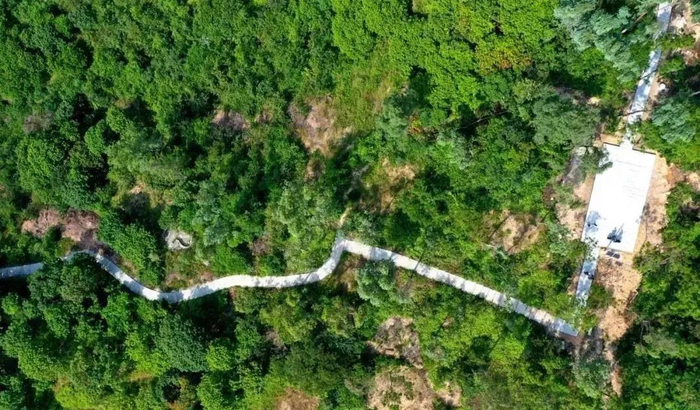 登山步道建设以原土路面为主,最大程度保留了山体原始生态景观,沿途设置了4个观景平台及多张石凳,方便登山群众休憩、赏景。
