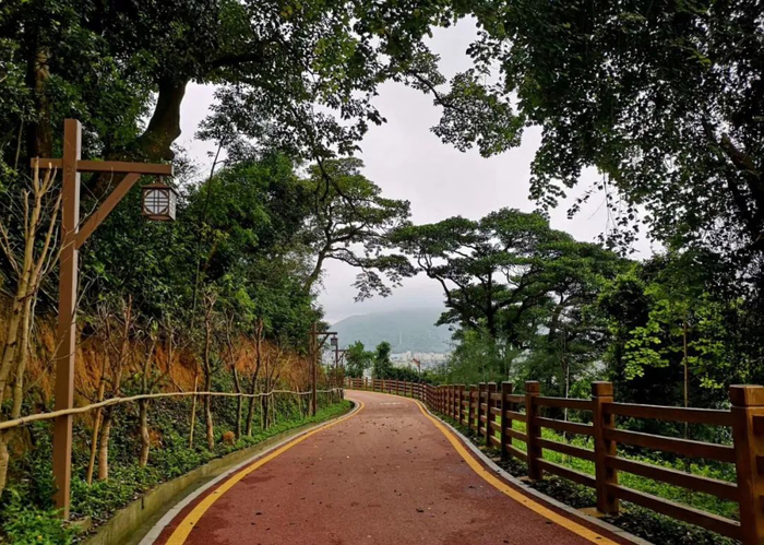 小横琴山步道顺德公社入口至乘风台段全程步行约1.5小时。途中设置连理枝、最相思、听涛驿、乘风台等多个景观节点。