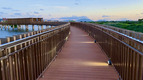 走在塑木板铺设的桥面上,可以欣赏郁郁葱葱的花木,眺望亲水生态美景,感受片刻的宁静,亦或是在休闲驿站谈天说地,远离城市的喧嚣。