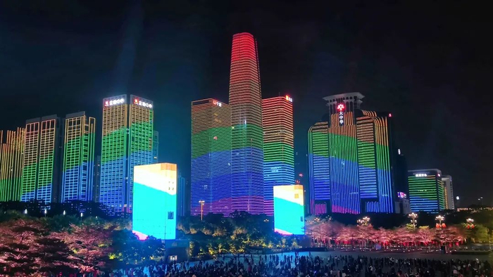 美轮美奂的光影点亮夜空,楼宇之间流光溢彩,除夕夜特别版灯光秀为市民带来了一场震撼的视觉盛宴,也为兔年春节营造了热烈喜庆的节日氛围,在丰富市民文化生活的同时提升了深圳的城市魅力。