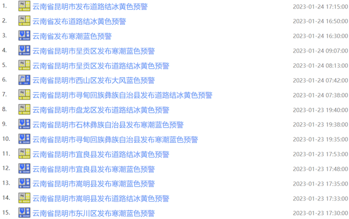 昆明已发布15个预警