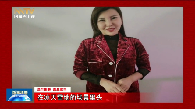 乌兰图雅 青年歌手 在冰天雪地的场景里头我们守望相助,我们草原儿女在春节佳节祝福祖国。
