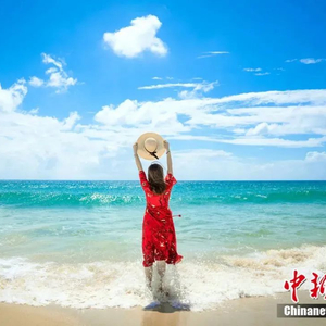游客在分界洲岛体验潜水,与鱼儿互动。童国强 摄