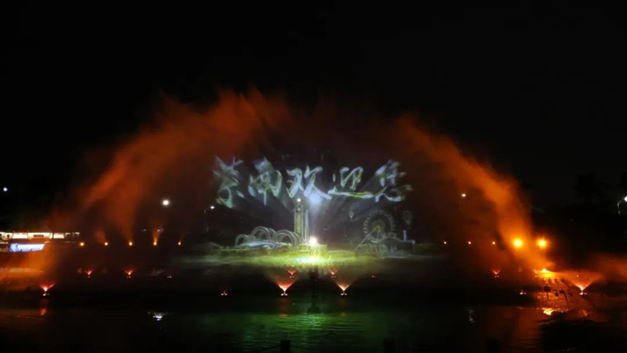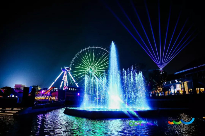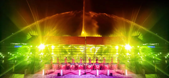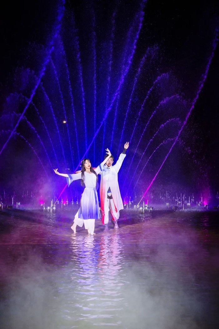 在紫南欢乐谷上演的水舞声光秀《乘风破浪的紫南》以讲述中国最美乡村紫南村的故事为核心,以炫酷的声光电为媒介,以惊艳视觉的表演形式,展示出新时代紫南村在大湾区乘风破浪的新形象。