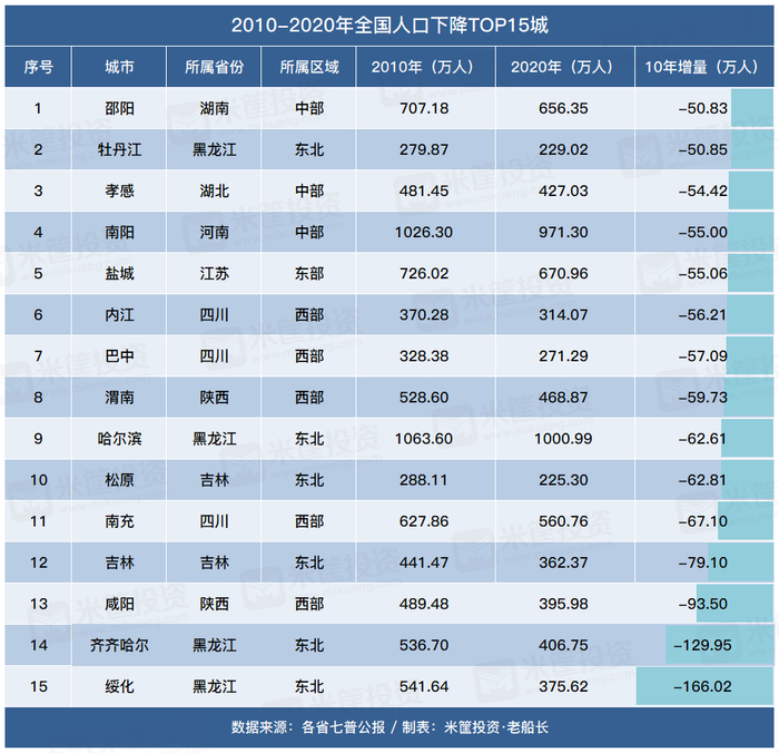 甚至,黑龙江的绥化、齐齐哈尔都下降超过了100万人。