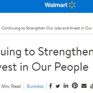 沃尔玛还在官网上公布了首席执行官John Furner发给全体美国员工的备忘录。Furner写道,“从下月开始,我们将提高员工的工资,以确保我们在行业中保持有吸引力的薪酬。”Furner预计,沃尔玛在美国的平均时薪将超过17.50美元。