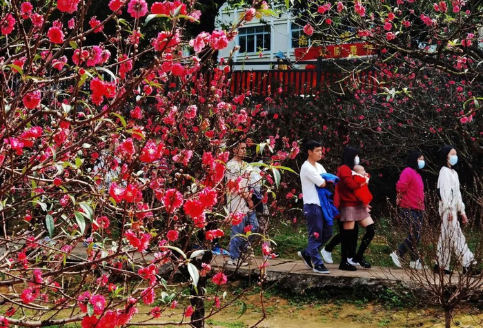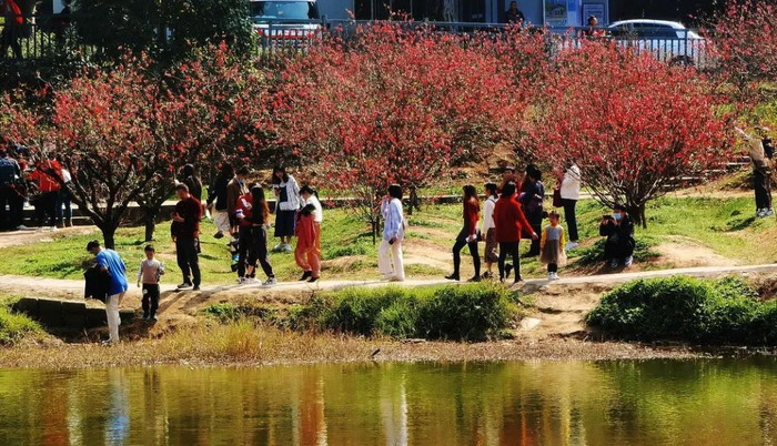 南海南国桃园桃花谷被誉为南中国最美的桃花园,是广佛地区新春赏花的热门目的地。桃花谷种植着多个品种的桃花,颜色有深红色、粉红色和白色,多姿多彩的桃花谷为今年春节假期增添了亮丽色彩。
