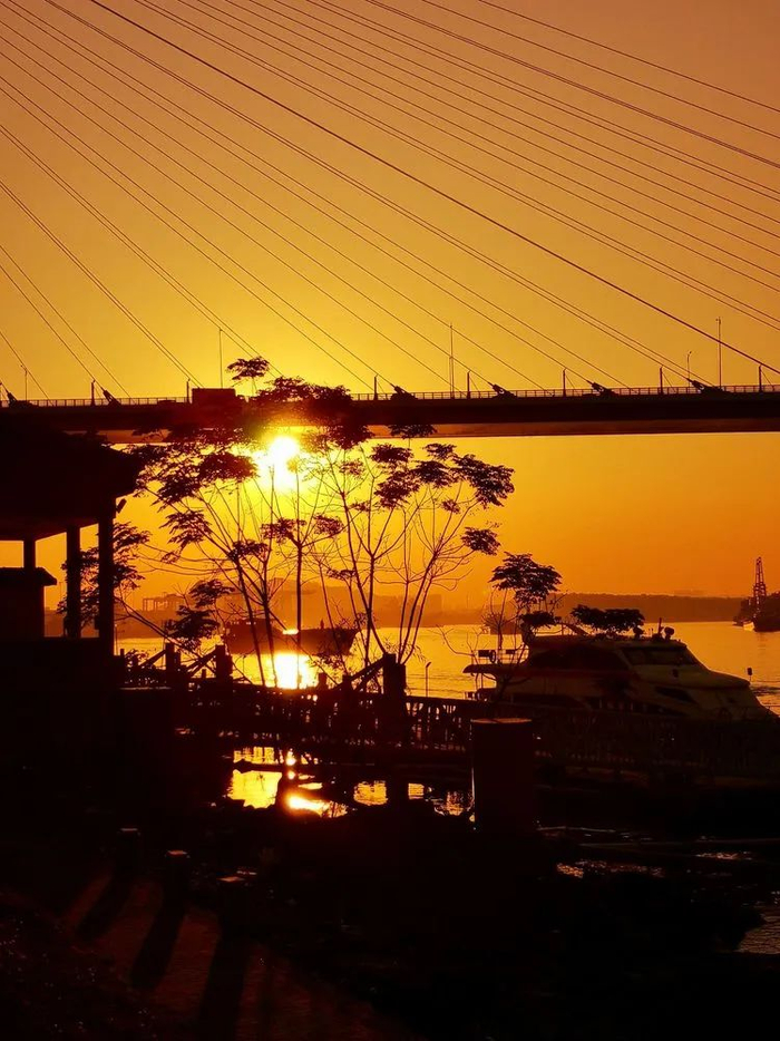 看着落日余晖在江面泛起金光点点