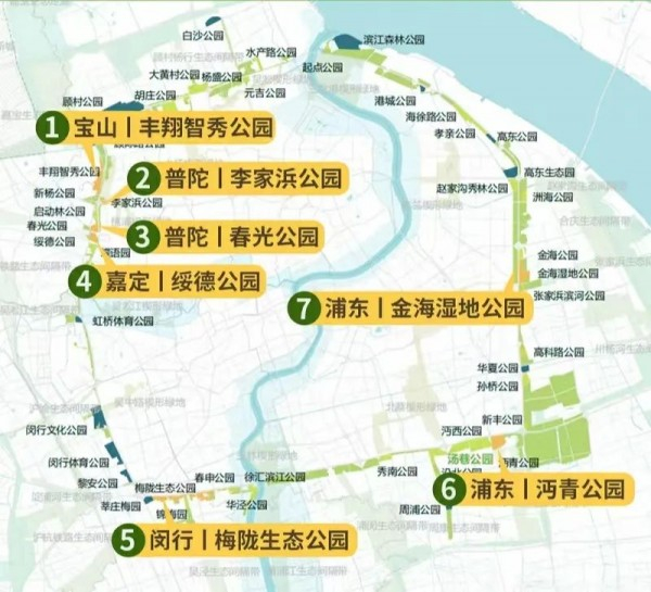 目前,申城正全力推进环城生态公园带建设,计划在“十四五”期间,在环城绿带的基础上新增36座生态公园,与原有的顾村公园、滨江森林公园和闵行体育公园等,共同构成50座环上生态公园群。