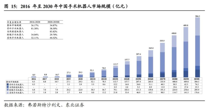 东北证券在2022年9月25日发布的研报中表示,全球市场蓬勃发展,中国前景一片蓝海。手术机器人成为高速发展的黄金赛道。手术机器人技术壁垒高、应用广泛,凭借临床效果和医患体验上的显著优势。京沪率先将手术机器人纳入医保报销名单,患者费用负担有望降低。