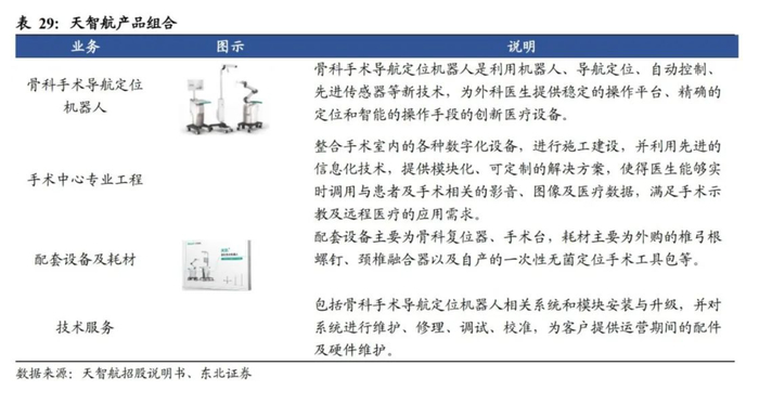 据财联社整理,在康复、手术机器人有布局的上市公司为天智航-U、埃斯顿、伟思医疗。具体业务如下: