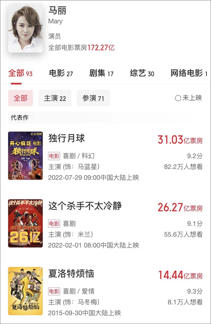 总体来看,国内男演员的个人票房要高过女演员,马丽是女演员票房第一,个人票房成绩不到160亿,在中国电影主演票房中只能排到第十,但也是唯一过百亿的中国女演员。