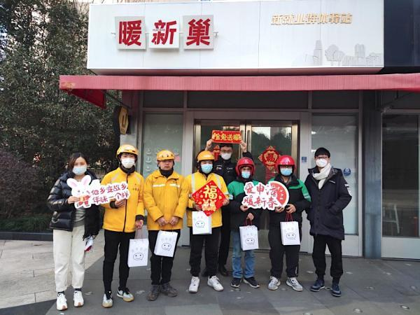就在春节前夕,华阳路街道社区党群服务中心还举行了一场别开生面的“爱申活暖新春——新就业群体迎新活动”,邀请辖区内的快递、外卖员们齐聚中山公园商圈的“暖新巢”新就业群体驿站,吃一顿别样的“团圆饭”,送上新春慰问和祝福。节日期间,华阳路街道主要的“暖新巢”站点也向各类新就业群体敞开大门,备足热水、姜茶、暖宝宝等御寒物品,让跑单累了的骑手们随时进来坐坐,取暖、热饭、喝水、充电,感受来自四面八方的温暖。
