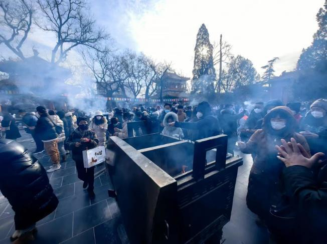 东城公安分局北新桥派出所副所长李阳告诉北青报记者,年三十儿当晚10点多,就已经有群众来门前排队了,大年初一雍和宫觐香人数达到5.2万余人,初一到初三的人数也始终保持在2.6万人以上。