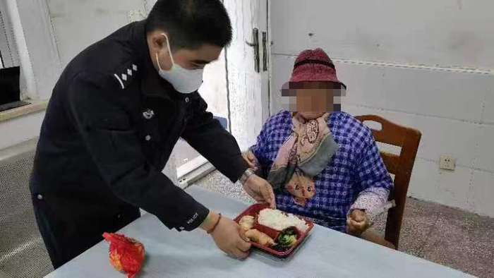 同样是除夕当日下午,分局洪庙派出所接到电话求助,称有老人在街边迷途。洪庙派出所民警曹建军赶到现场时,老人早已被冻得浑身发抖、嘴唇发紫。曹建军将老人搀扶到警车上取暖,一边安抚其情绪一边询问信息。
