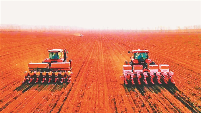 八五五农场有限公司多台播种机进行大豆播种作业。 本文图片均为资料片
