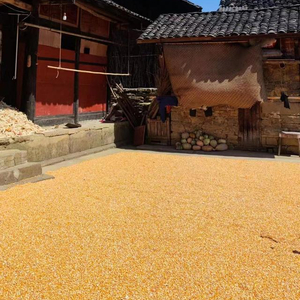 低矮的老宅错落有致地填满山村,又被茂密翠绿的参天大树层层包裹,婆娑树影斜照在老宅大红的墙面上,正午暖阳普照,天空湛蓝,院子里晒满了金灿灿的玉米粒......这就是张月东的家乡——贵州省铜仁市德江县梨子水村秋天的风光。