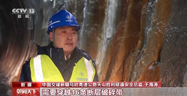 中国交建新疆乌尉高速公路天山胜利隧道安全总监 于海涛:需要穿越16条断层破碎带,按照传统施工工艺,需要工期72个月。