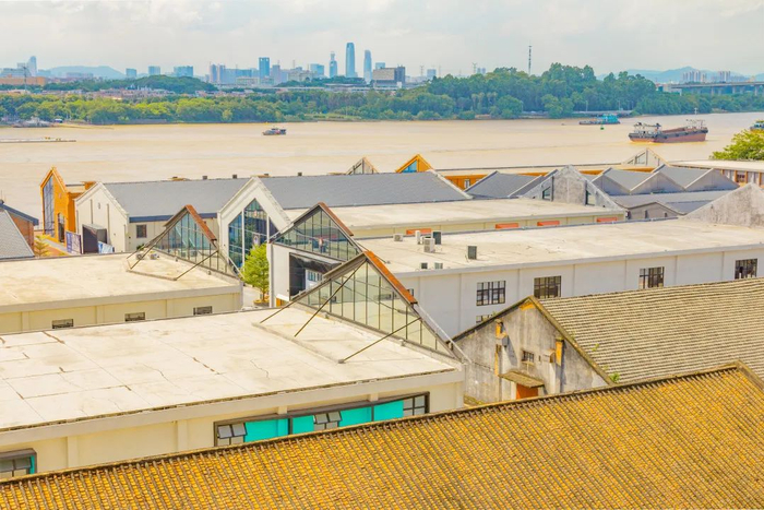 工美港保留钢结构建筑调性,彰显在园区内的红砖墙、江边的吊船承重塔、混凝土搅拌展示等,富有现代工业感,既融入了现代元素,也保留了一代人的青春记忆。
