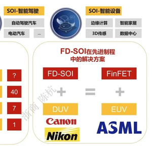 理论上,利用DUV光刻机制造的FD-SOI产品,可以达到与采用EUV光刻机制造的FinFET产品相当的性能。