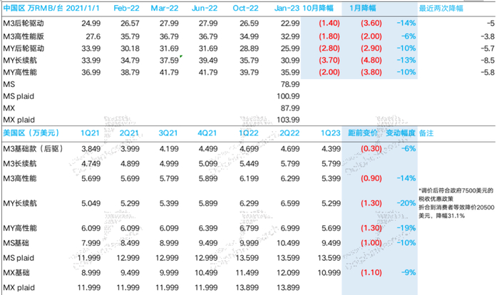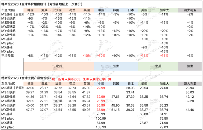 而在1月这波特斯拉全球降价潮当中(最终降下来的价格以中国最为便宜),特斯拉关键粮仓区——中国、美国、欧洲的降价幅度大多至少在10%以上。