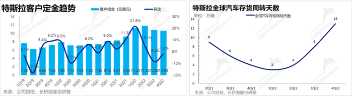 更重要的是到四季度末特斯拉的客户定金同比和环比还都在下滑中,并没有因为中国市场的降价而企稳。