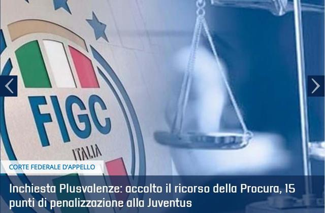 尤文已经被扣除15个意甲积分