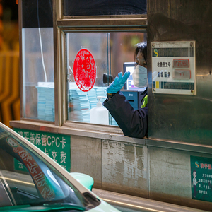 2023年1月20日晚11时许,京哈高速北京白鹿站出京方向,工作人员解答司机的疑问。人民视觉 图