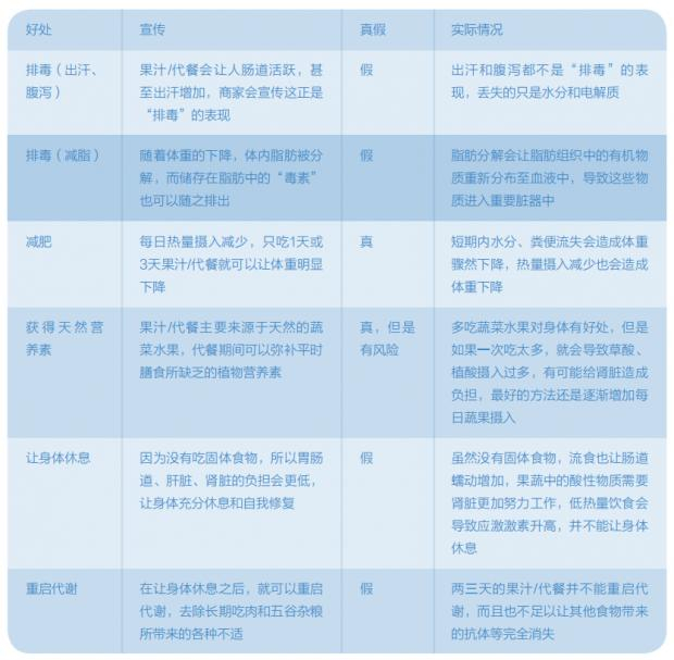 果汁/代餐的宣传和实际效果鉴别见表1。