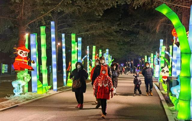春节期间,长春动植物公园内,主题为“欢乐动物园 疯狂动物奇妙夜”的新春灯会,年味十足。近三千件灯组,璀璨点亮,流光溢彩,吸引市民前来参观。