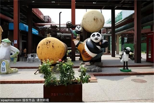园区里面有很多彩色的工业和艺术元素,转角处总能遇到小惊喜,马卡龙色系和工业风建筑相撞,满满的艺术感,让你可以一次性get小清新、复古风两种格调的照片。