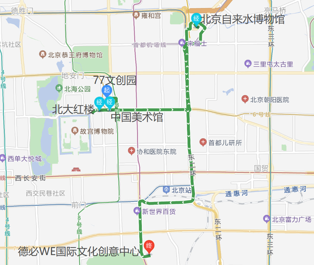 77文创园(拍照参观、看展览展出)→中国美术馆→北大红楼(购买文创产品)→北京自来水博物馆/德必WE国际文化创意中心
