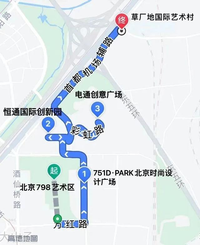 北京798艺术区(艺术画廊、艺术展览、古着店、中古店、潮玩店、买手店)→751D·PARK北京时尚设计广场(小柯剧场、数字艺术秀、植物园餐厅、ACE CAFE)→恒通国际创新园→电通创意广场→草厂地国际艺术村