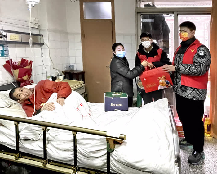随后,慰问人员驱车来到市中医院住院部病房,看望慰问家住南川园34幢的低保家庭韩建中、屈占红夫妇。韩建中因患重病住院卧床10多年了,孩子韩嘉琪上初一,家庭生活相当困难。李军、钱萍华带领学生和家长送上了慰问品,屈占红激动地说,感谢社会爱心人士的关爱,你们的关爱支撑着我们以坚强的意志与病魔作斗争。