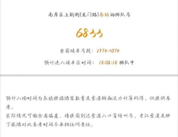 微博网友晒出的照片显示,长江索道排号一度超过了6800号
