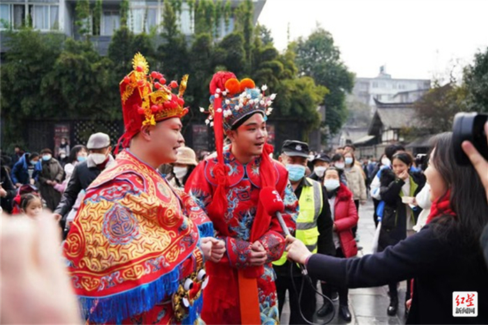 撒过了“财气”,大小财神又出现在宽窄巷子直播间,深入街区院落品味川茶文化、火锅文化、川剧文化……与广大网友共尝“破五”年夜饭。得知赵公山“正财神”来了,街区里的商户也纷纷发出邀请,希望“财神”登门,为新的一年讨个好彩头。