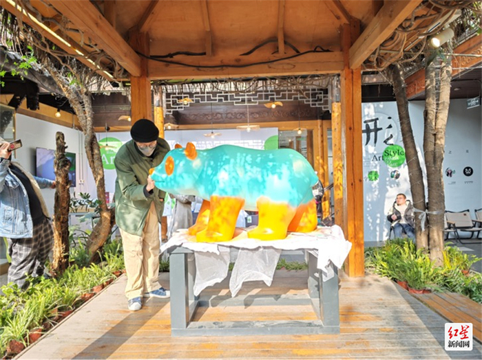 除了“破五”迎财神主题活动,初五当天,艺术家刘佳欣现身熊猫回家——首届新国风熊猫艺术巡展,在展厅现场即兴创作《机械熊猫2023》,给游客带来不期而遇的惊喜。