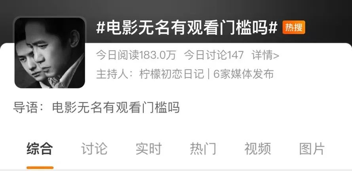这次的《无名》也不例外,微博上甚至发起了“无名有观影门槛吗”的热门话题。