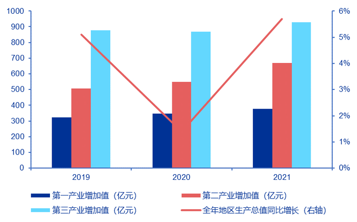 与蒙西地区的鄂尔多斯、包头等地相比,人们提到赤峰市当地产业,普遍能想到的是能源、冶金、食品、化工、建材等传统加工制造产业,这些制造企业多集中在中心城区,2021年对规模以上工业的贡献率达90.4%。但是,即使是对当地产业变化不甚了解的普通市民,也能感受到工资涨幅难以跟上物价上涨。追根溯源,赤峰市本地传统产业受市场容量、技术升级和能耗双控等多因素制约,很难在国家层面提倡的经济新常态下支撑起赤峰工业产业发展。